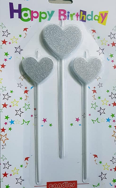 Package Includes: 1 Pack Contains 3 Pcs of 13 Cm Silver Glitter Heart Cake Candles.