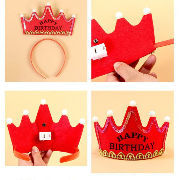 Package Contains :-1x Happy Birthday Light Up Crown- Red Size: 16x11x11cm.High-quality materials, exquisite craft, fashion and generous, unique new, unforgettable. Bring it seemed noble decent, give you the perfect experience when you join a party.Made of paper and non-woven and LED light. This is a premium LED crown birthday party hat for kids and adults. It is a lovely accessory which brings fun during the birthday party. Made of paper and non-woven and LED light, it makes you the center of attraction in party.